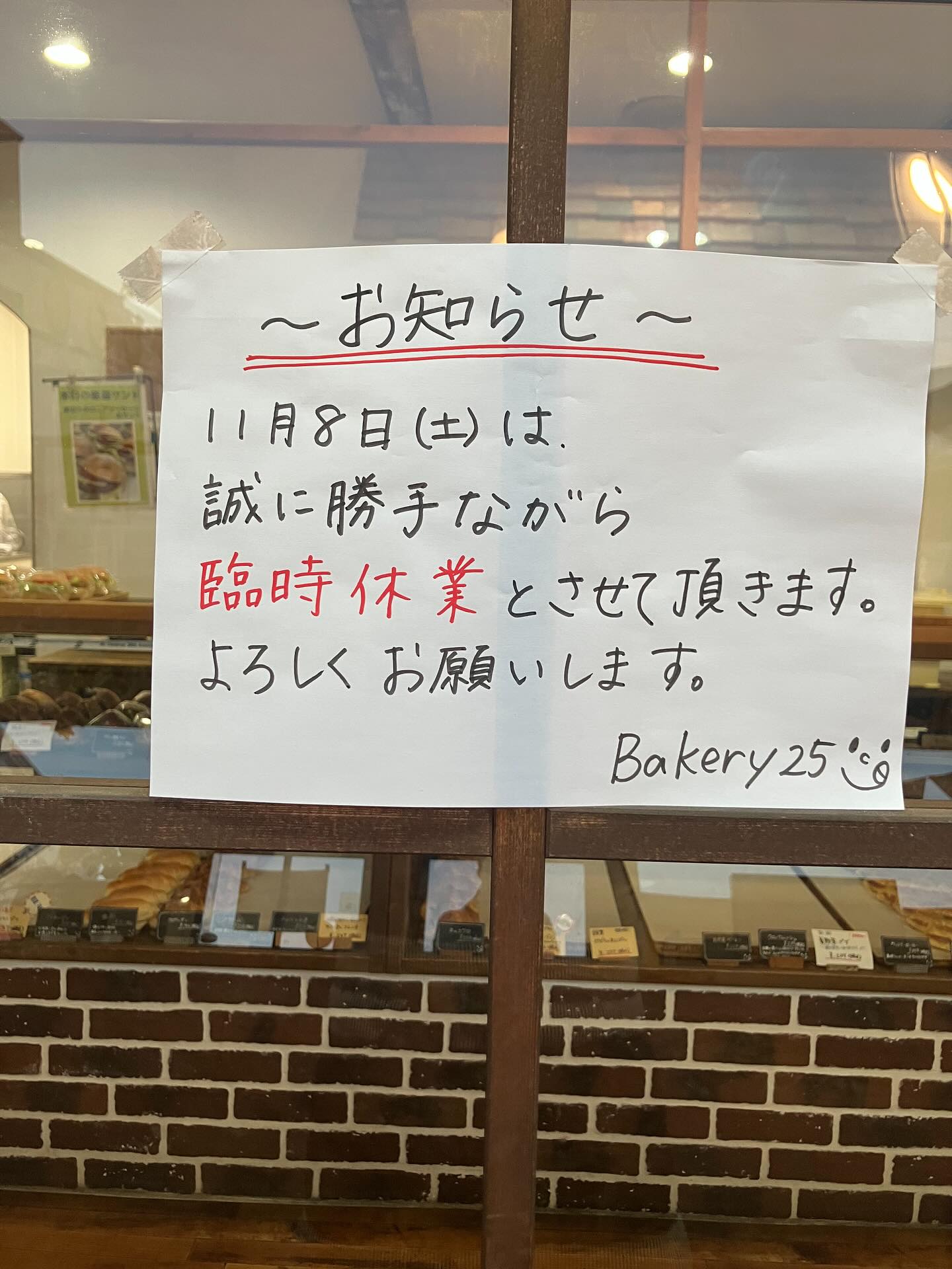 11/7金曜日朝6時よりオープンしてます。明日11/8土曜日は臨時休業を頂きます。週末のパンは今日お買い求..