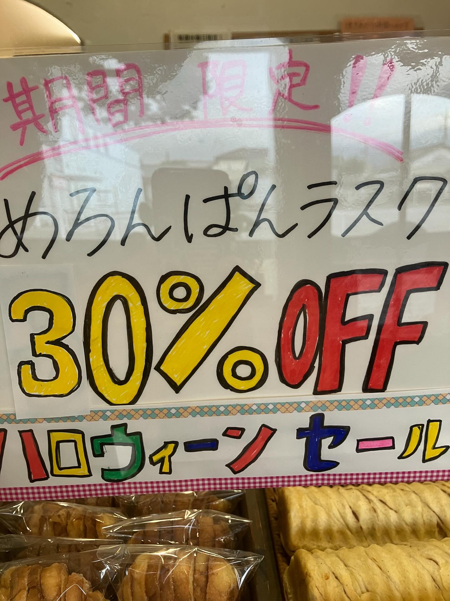 10/14火曜日 朝6時よりオープンしてます。連休明け、霧雨🌧️休み疲れが抜けない皆様、みんな同じですよー!しっかり食べて頑張りましょう‼️メロンパンラスクセール開催中です。残り少なくなってきましたの..