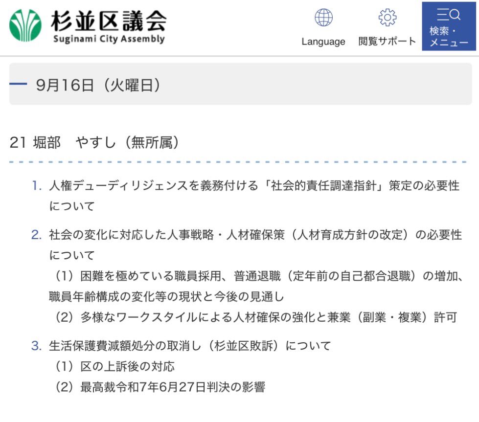 堀部やすし(区議会) 2025/9/16(火) 01:00