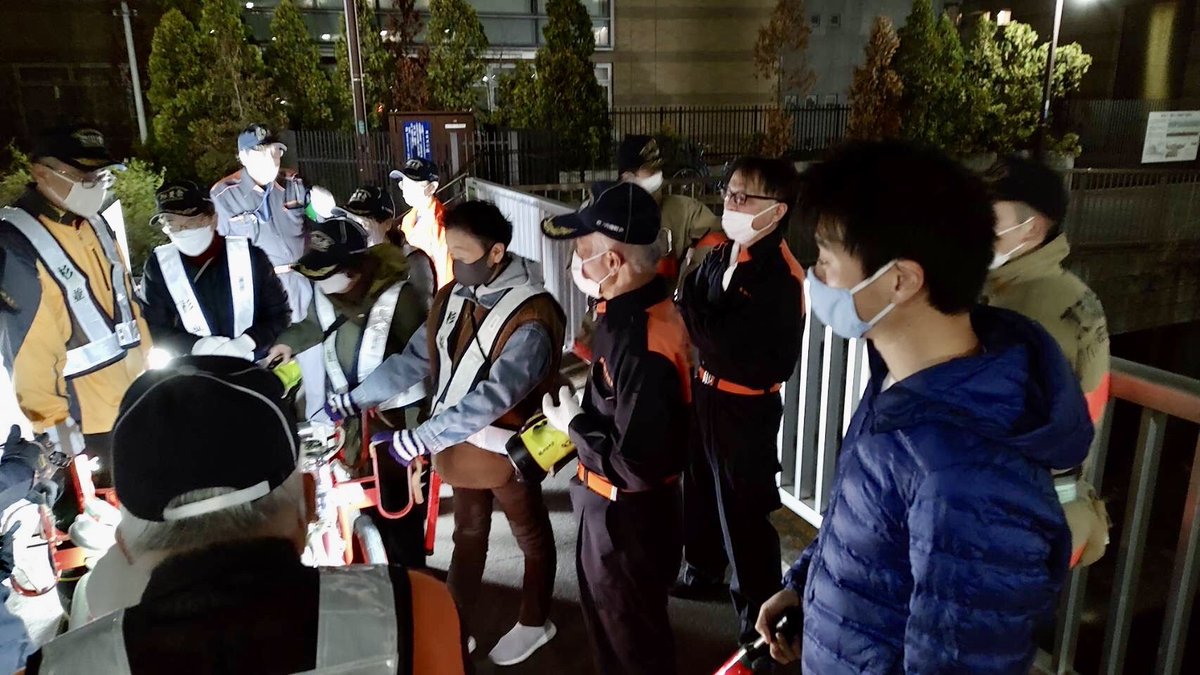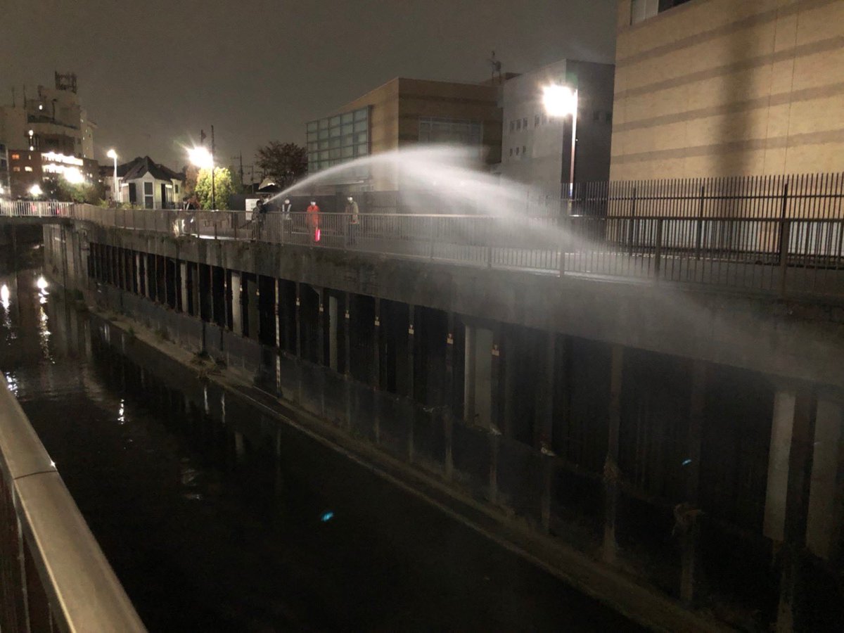 地元町会の夜間放水訓練に参加。災害は昼夜問わずやってきます。訓練では善福寺川から吸水し、放水。訓練初参加者や女性の方に積極的に放水体験をしていただきました。皆で地域を守る共助の意識を持つことが大切です。