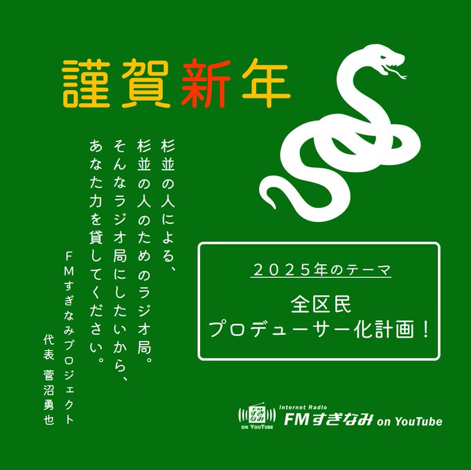 \\謹賀新年// 皆さんあけましておめでとうございます! これからも杉並の人に喜んでもらえる 取材・放送活動に努めていきます。 今年もFMすぎなみをよろしくお願いします。 #FMすぎなみ #杉並