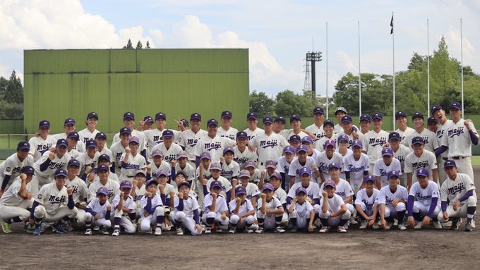 【#高森キャンプ】高森キャンプ8日目!島岡野球教室で高森町の子供たちと交流を深め、初心に返るよい機会となりました!#明治大学野球部#奪冠