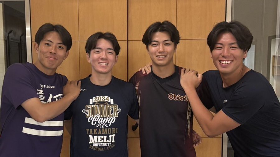 【#府中キャンプ】本日は府中キャンプ4日目!厳しい暑さの中でも、元気に練習に取り組みました1枚目:#三部大智(4年・#明大中野八王子)2枚目:後列左から#田中陽貴(3年・#明大明治)、#松本哲郎(3年..