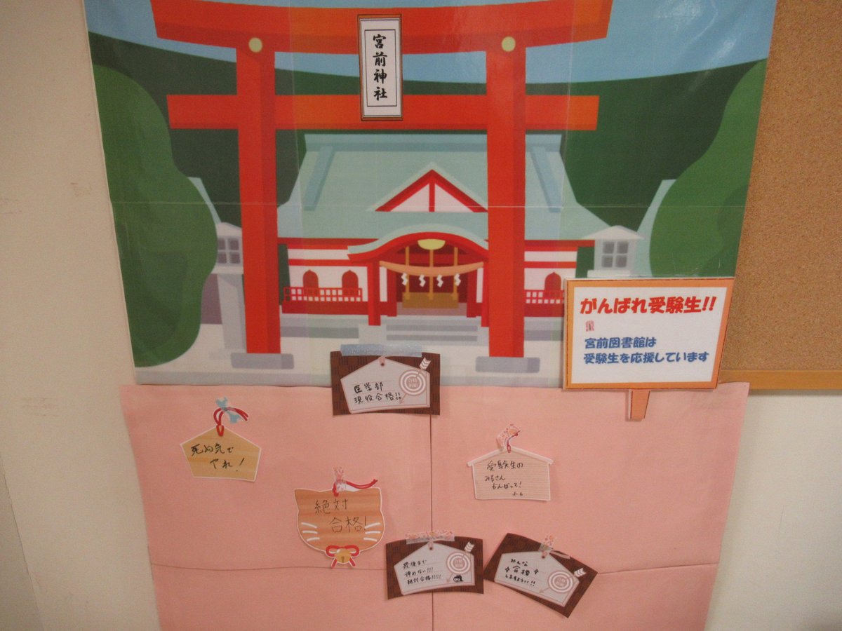 【図書館】本日1/8(日)は夕方5時までの開館です。明日も祝日のため夕方5時までの開館ですのでご注意ください。 今年も3階の読書室入口横に宮前神社ができました。受験生のみなさん、ぜひ願い事を書いて貼り..