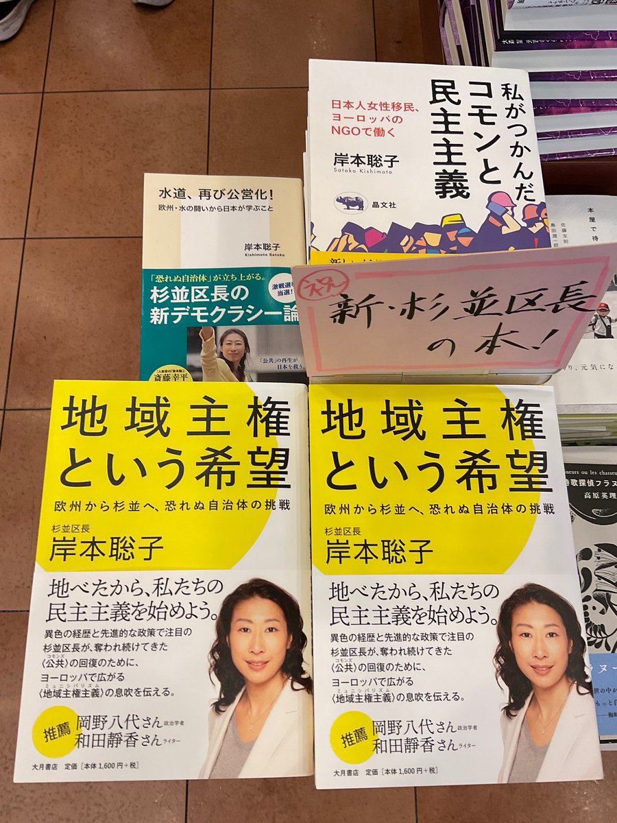 本日より岸本聡子区長の新刊『地域主権という希望』(大月書店)を先行発売しております!大月書店の編集さんと営業さんが、杉並区の方たちにいち早く届けたい…!とたったいま直納してくださいました!ぜひぜひ今野..