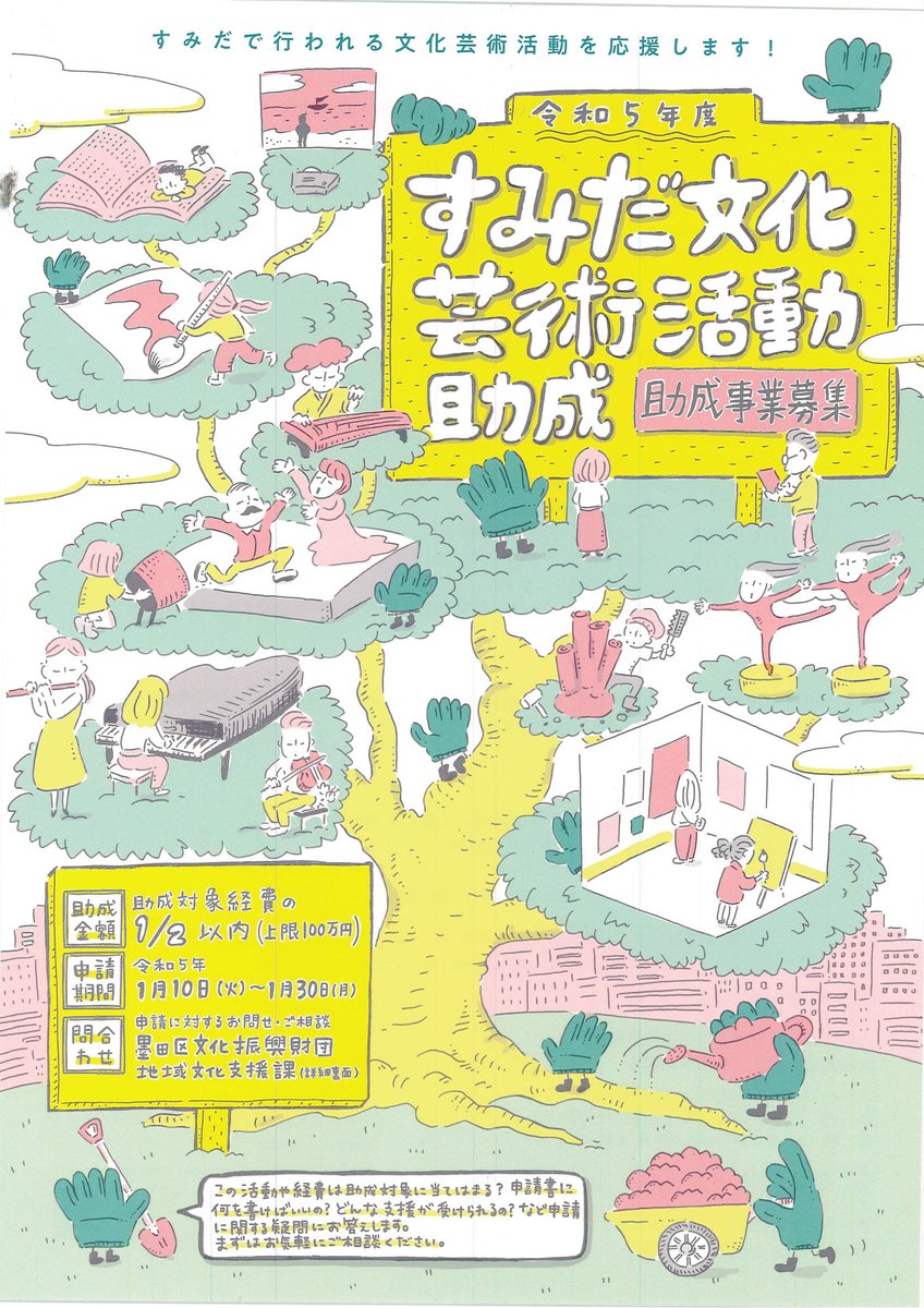 \\#軒先インフォメーション ♪♪//1月10日(火)〜1月30日(月)『すみだ文化芸術活動助成』令和5年度すみだ文化芸術活動助成の公募です!助成対象経費の合計額の2分の1以内の額で、100万円を限度..