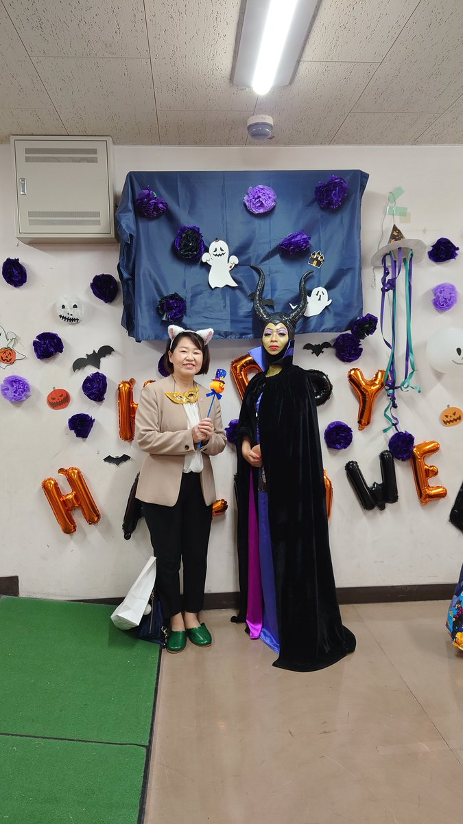 10/28【ディズニーランド?】ではありません。#緑小学校で行われた#ハロウィン🎃パーティー。大人も子どもも仮装して、会場中が楽しい熱気にあふれてました。子ども達の笑顔の為にと奮闘する🌟マレフィセント..
