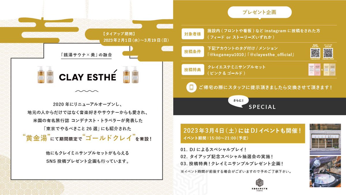 先日から始まった、サロン専売シャンプー/ヘアマスクの"クレイエステ"を試せるコラボ企画✨既に「シャンプー、凄い良くてびっくり」とのお声が届いております…!銭湯通いに便利なミニサンプルセットのプレゼント..
