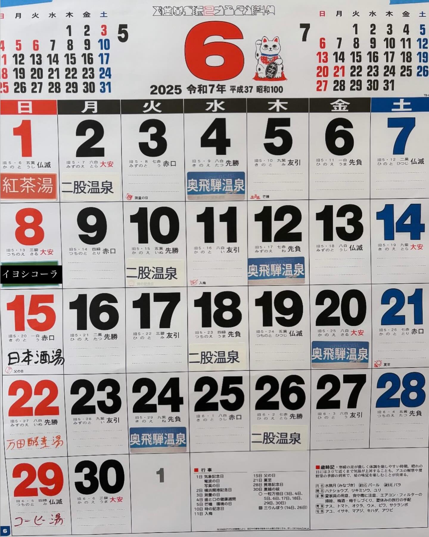 5月の変わり湯カレンダーです!5/5(月)菖蒲湯🌿ご入浴のお客様にヤクルトをプレゼントいたします!