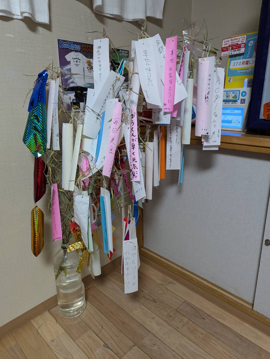 こんばんは今年は皆様のおかげで素敵な七夕飾りが出来ました(若干、笹が重そうに見えるのはきっと気のせいでしょう…)織姫と彦星は今年は再開できたのでしょうか皆様の願いもきっと叶います様に