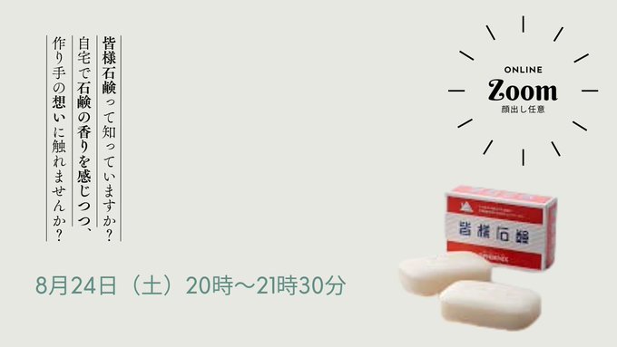 【湯どんぶりの報連相】皆様石鹸さんとコラボしたオンラインイベントを開催します!・日時:8.24(土)20時~21時・開催方法:Zoom・参加特典:皆様石鹸+泡立てネットプレゼン・参加方法:このポストの..