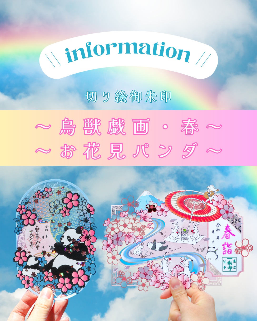 ・・こんにちは😊とてつもなく暑い日が続いています🌞みなさんいかがお過ごしでしょうか?さて今日は、【切り絵御朱印 ~お花見パンダ~】【切り絵御朱印 ~鳥獣戯画・春~】についてのご連絡です🐼⭐❁.。.:*..