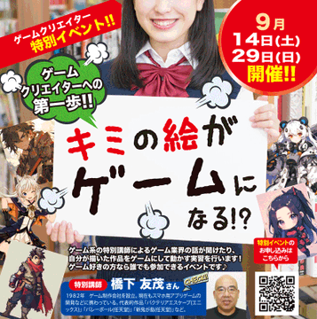 ゲームクリエイター特別イベント開催!9月14日(土)・9月29日(日)の2週連続でオープンキャンパスを開催します!「キミの絵がゲームになる!?」ゲームクリエイターへの第一歩を踏み出すチャンス!http..