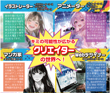 【クリエイティブな未来を目指すあなたへ!】「イラストを描くのが好き!」「自分の世界をマンガやアニメで表現したい!」そんな皆様、クリエイティブなスキルを磨きませんか?私たちの学校では、イラスト、マンガ、..