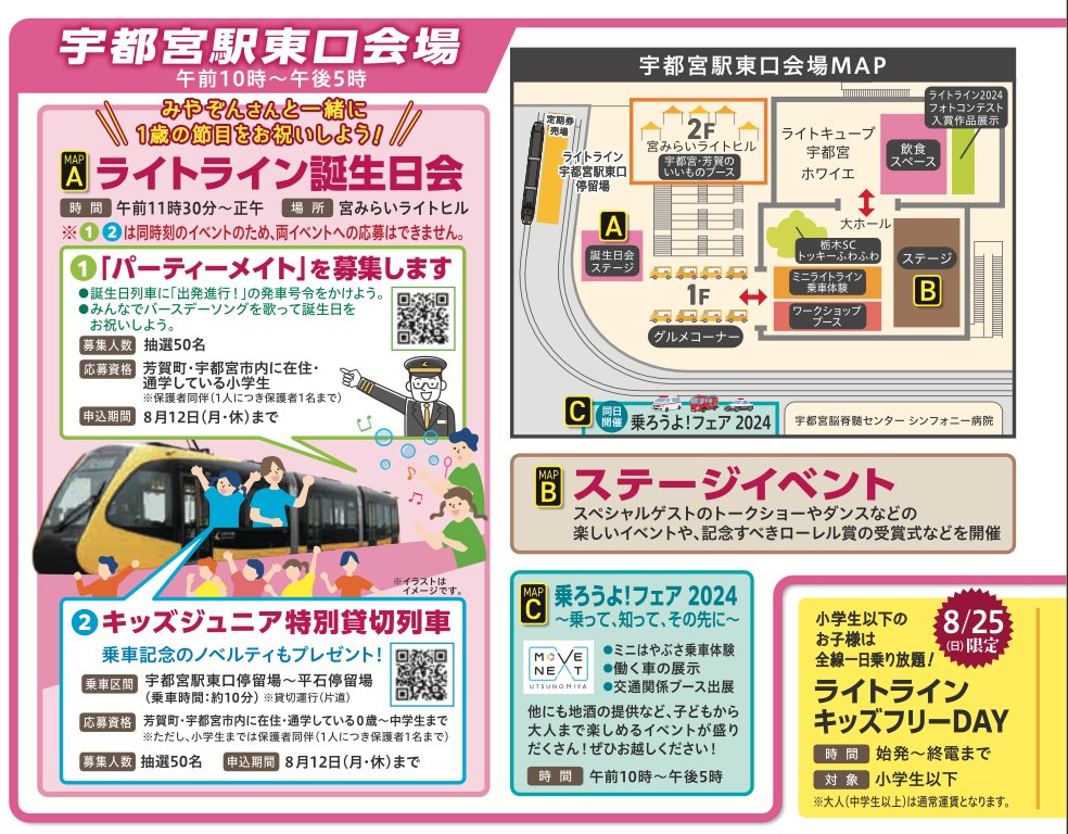 ━*\LIGHTLINEBIRTHDAYPARTY/*━#ライトライン#開業1周年イベント開催8月25日(日)宇都宮駅東口・ライトライン車両基地ライトライン車両基地では、ライトラインとかけっこや綱引き..