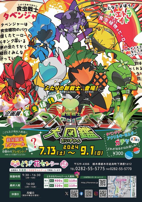 /#とちぎ花センター企画展「食虫植物展食虫戦士#タベンジャー大図鑑」\夏休みに欠かせない人気の#食虫植物展を今年も開催あの食虫植物のヒーローが新しい仲間とともに帰ってきた!料金:大人400円小人110..