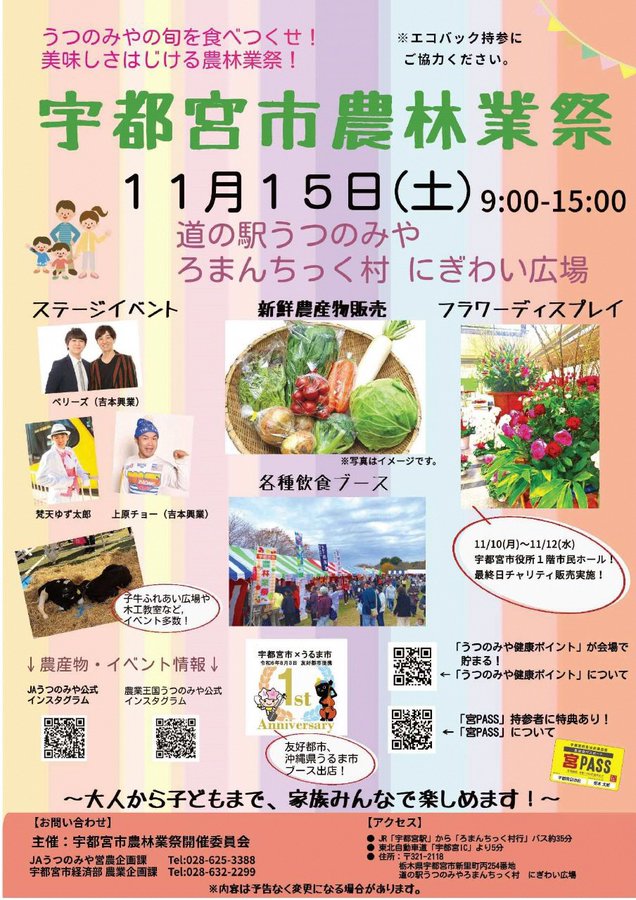 \うつのみやの旬を食べつくせ美味しさはじける農林業祭を今年も開催します/日時11月15日(土)午前9時~午後3時会場道の駅ろまんちっく村にぎわい広場詳細はこちらhttps://city.utsunom..