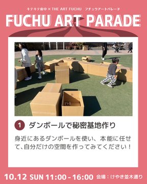 いよいよ今週末開催アートをもっと気軽に、もっと身近に体感できるアートイベントを開催入場無料で演劇や即興パフォーマンス、子どもも楽しめるワークショップが盛りだくさん♪10月12日(日)11時~16時府中..