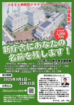 【新庁舎にあなたの名前を残します!】市では、新庁舎建設に伴うふるさと納税型クラウドファンディングを実施しており、多くのご支援により目標額の50%となる1000万円を突破しました!3万円以上の寄付であな..