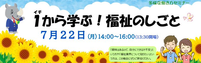 「1から学ぶ!福祉のしごと」参加費無料日時:7月22日(月)14:00-16:00場所:東京しごとセンター地下2階講堂◇「興味はあるけど、自分にできるか不安」「福祉業界について知りたい」という方は、こ..