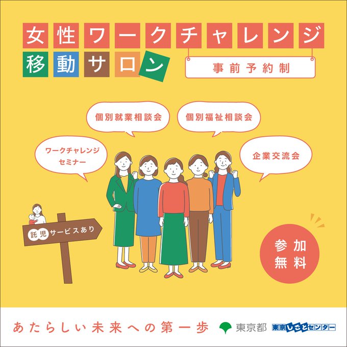 あなたの第一歩を応援します!女性ワークチャレンジ移動サロン7/25(木)【大田会場】応募受付中です♪働く前に何からはじめる?どんな働き方があるの?疑問を解消して一歩を踏み出しましょう!詳細・応募はこち..