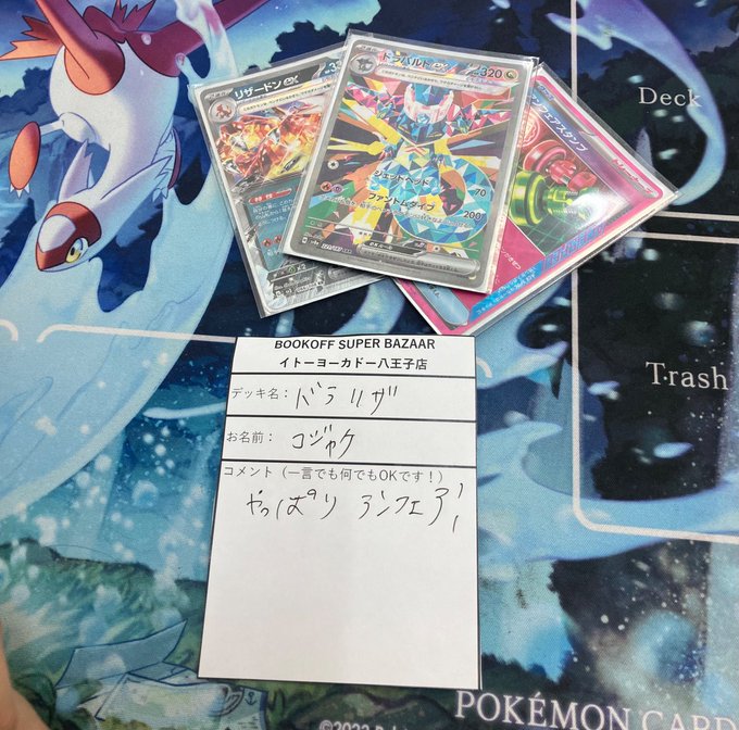 〜大会結果報告〜 #ポケカ 【非公認大会】 参加人数【17名様】 優勝 コジャケ 様 デッキ名 【ドラリザ】 一言 やっぱりアンフェア! ご参加頂きありがとうございました #高尾山と八王子の狭間 #ブックオフIY八王子
