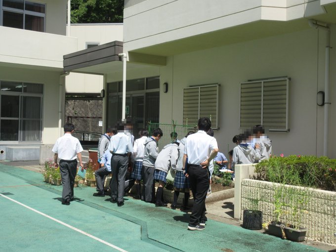 5月15日、中学1年生は理科の授業で学校菜園に行き、伸び始めたトマト・キュウリのスケッチをしました。観察して絵と文で表現することを定期的に行うことで、観察力・表現力を養います。大切なのは成長を見ること..