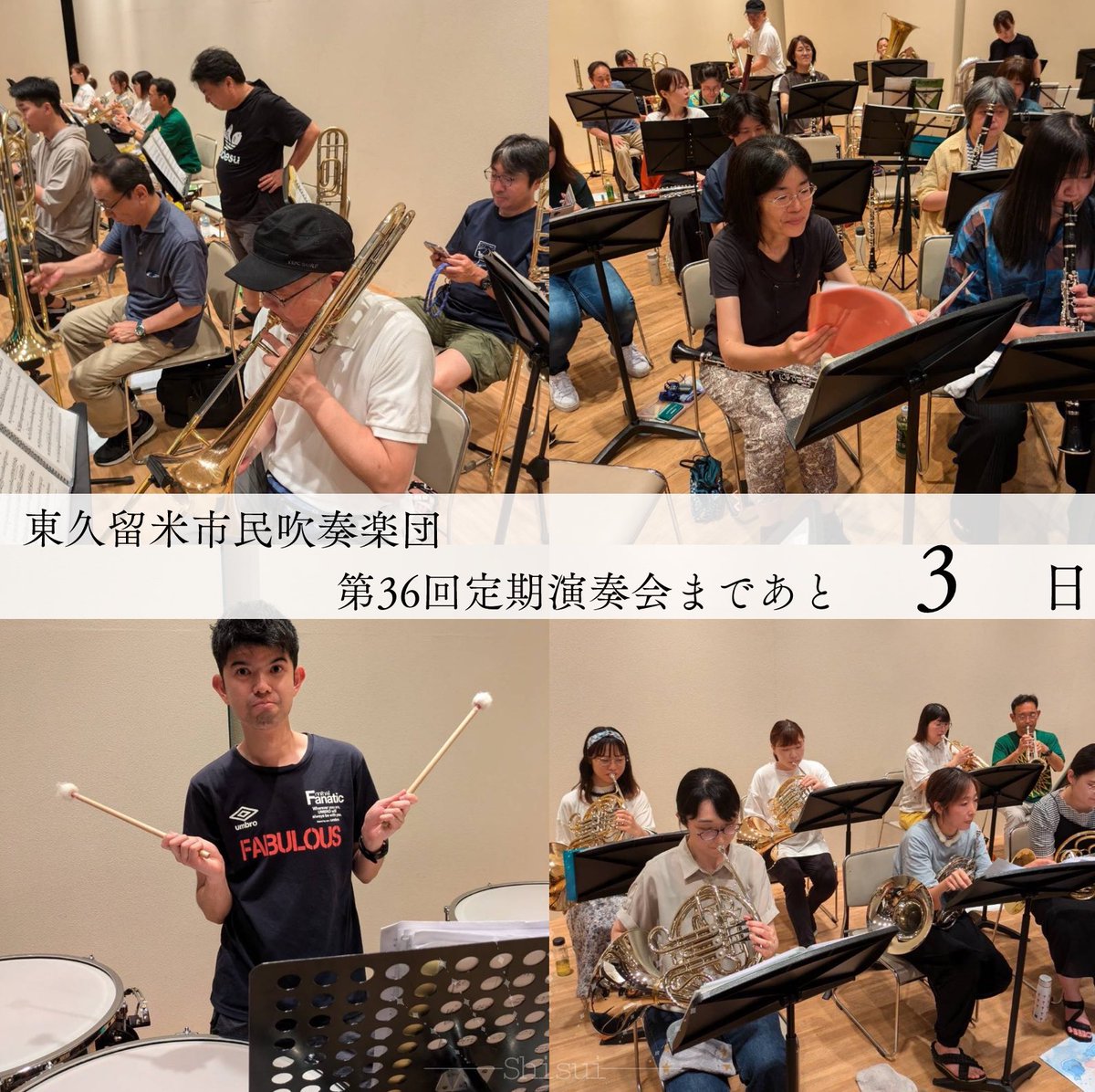 東久留米市民吹奏楽団 定期演奏会まであと 3日!! ♬第36回 定期演奏会♬ 日時:2024年7月14日(日) 場所:東久留米市生涯学習センター まろにえホール 開場 13:00/開演 13:30 入場無料 皆様お誘い合わせの上お越し下さい