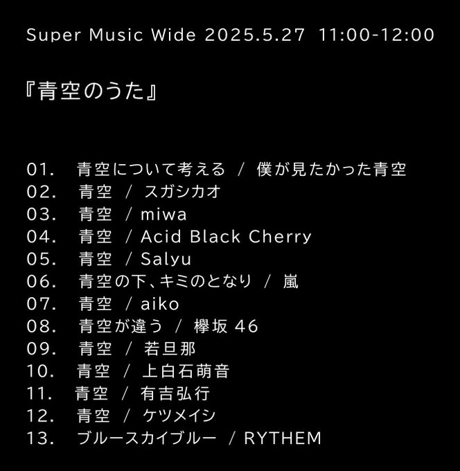 【SuperMusicWideNowOnAir】スタッフセレクトによる音楽漬けの1時間5/27(火)11:00「青空のうた」#TOKYO854#くるめラFM85.4MHzPC・スマホ→http://f..