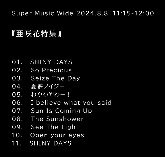 【SuperMusicWideNowOnAir】スタッフセレクトによる音楽漬けの1時間8/8(木)11:15「亜咲花特集」#TOKYO854#くるめラFM85.4MHzPC・スマホ→http://fm..