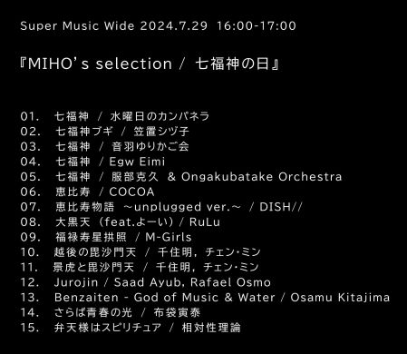 【SuperMusicWideNowOnAir】スタッフセレクトによる音楽漬けの1時間7/29(月)16:00「MIHO'sselection/七福神の日」#TOKYO854#くるめラFM85.4MH..