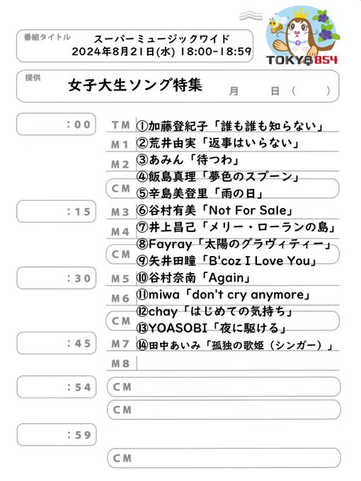 【SuperMusicWideNowOnAir】スタッフセレクトによる音楽漬けの1時間8/21(水)18:00「じーむらセレクト/女子大生ソング特集」#TOKYO854#くるめラFM85.4MHzPC..