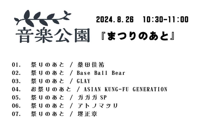 ☆「はじめんの音楽朝食堂」は都合により休止します【音楽公園NowOnAir】スタッフセレクトによる音楽漬けの30分8/26(月)10:30~11:00「まつりのあと」#音楽公園#TOKYO854#くる..