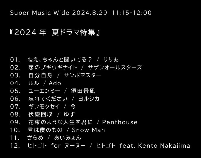 【SuperMusicWideNowOnAir】スタッフセレクトによる音楽漬けの1時間8/29(木)11:15「2024年夏ドラマ特集」#TOKYO854#くるめラFM85.4MHzPC・スマホ→ht..