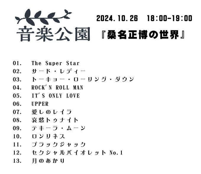 【音楽公園NowOnAir】スタッフセレクトによる音楽漬けの1時間10/26(土)18:00「桑名正博の世界」#TOKYO854#くるめラFM85.4MHzPC・スマホ→http://fmplapla..