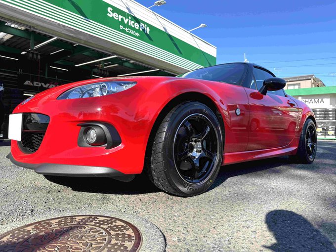 本日のご紹介はこちらっ! ロードスターに TC-4 SE グロスブラックをお取り付け♪ 合わせるタイヤは ADVAN NEOVA AD09! 純正17インチから16へインチダウン! 赤ボディに黒で足元引き締まりますよね~ とってもよくお似合いです!