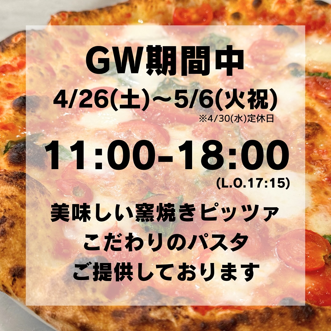 いよいよゴールデンウィーク!お出かけされる方も、ゆっくりされる方も、そしてお仕事の方も、みなさんにとってゴールデンなウィークになりますよーに🙏🍕当店は日頃、月火木の15:00以降はカフェ利用となってお..