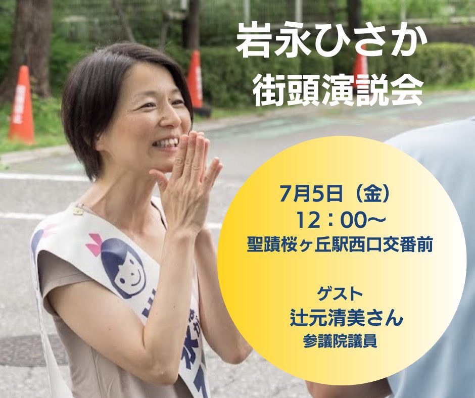 #岩永ひさか 候補と #辻元清美衆議院議員 の演説会!元気トークが炸裂しそうです #都議補選