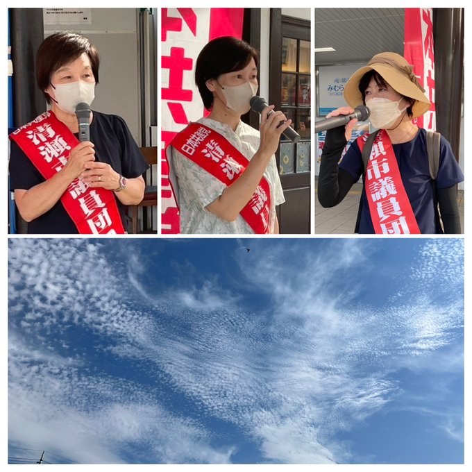 さわやかなうろこ雲の空でしたが、暑い今朝は#清瀬駅南口から挨拶。#地域図書館廃止と宅配サービスなど新たな事業についての市の説明会が昨夜ありました。なぜ市民に情報を隠すの?利用してほしいなら図書館廃止は..