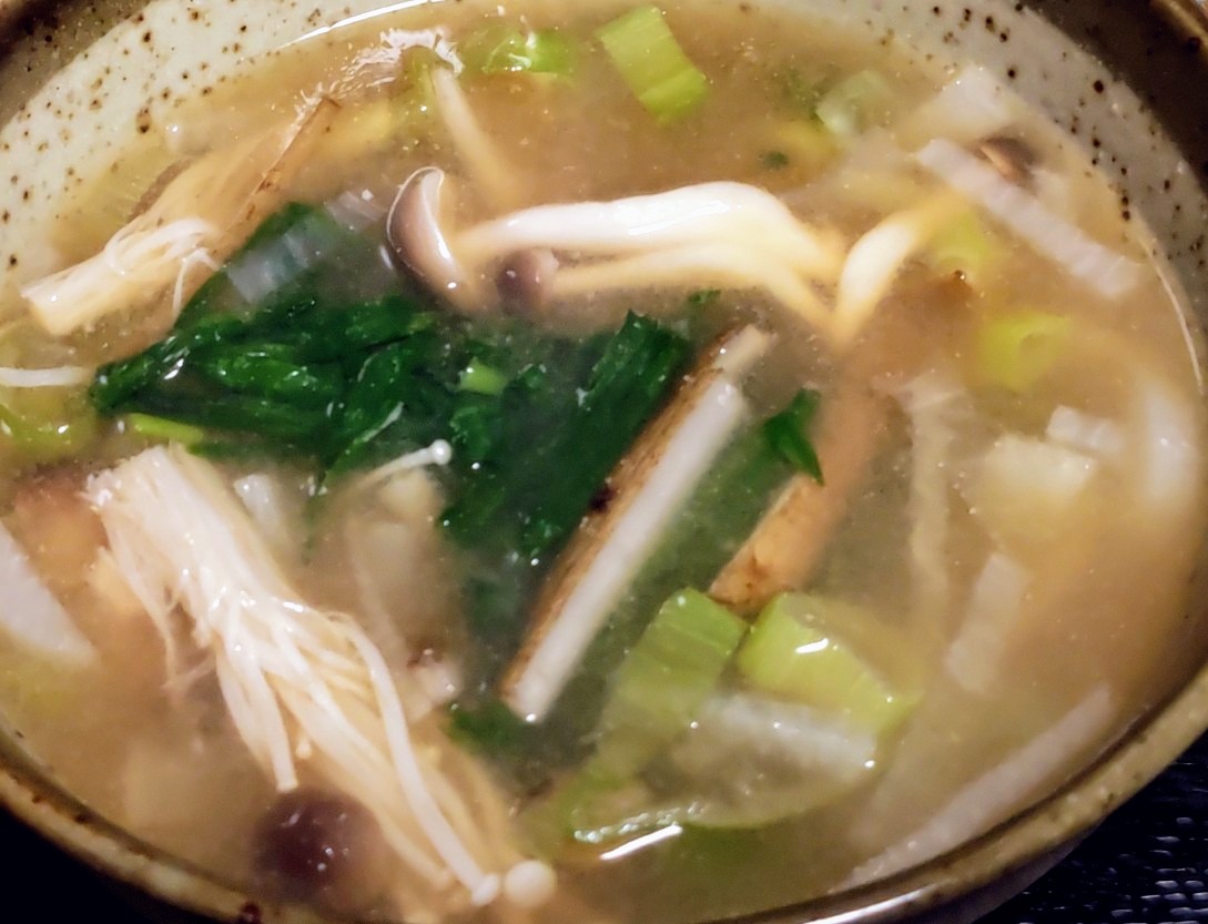 (続) ということで、毎朝の三根五菜味噌汁です。 今日の素材は、さつまいも、大根、牛蒡+にら、ねぎ、椎茸、しめじ、榎茸。 毎日、少し組み合わせを変えています。これからの季節は何がいいですかね。