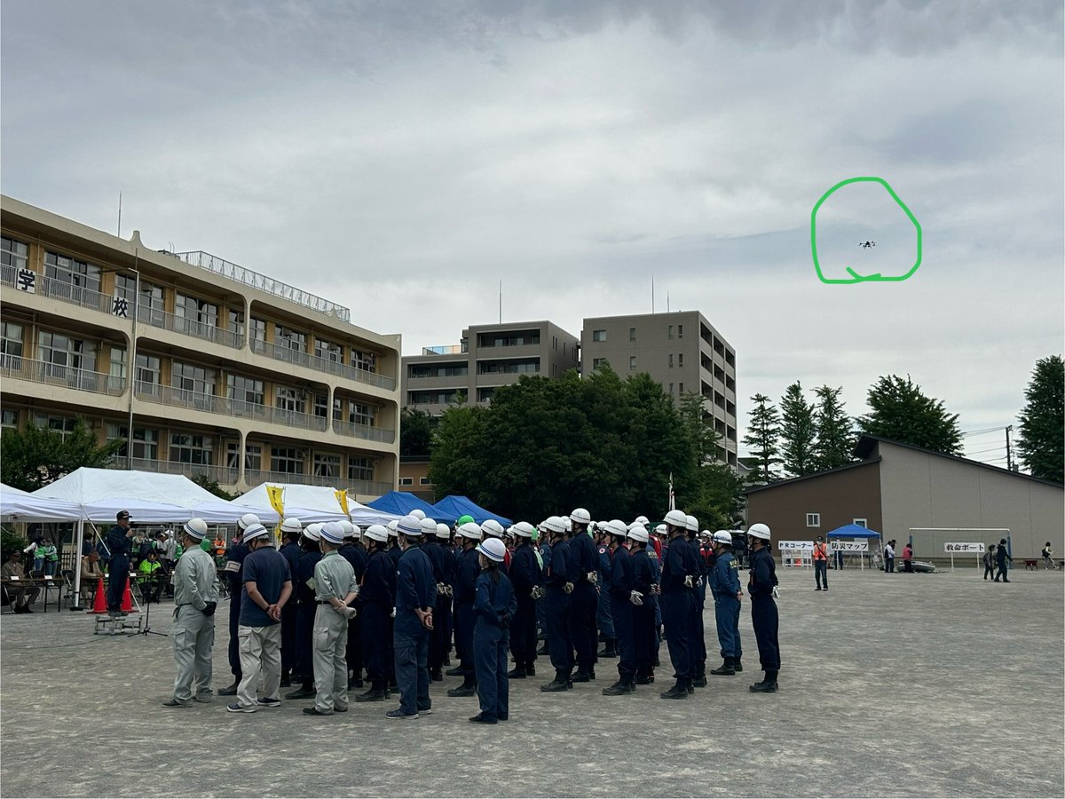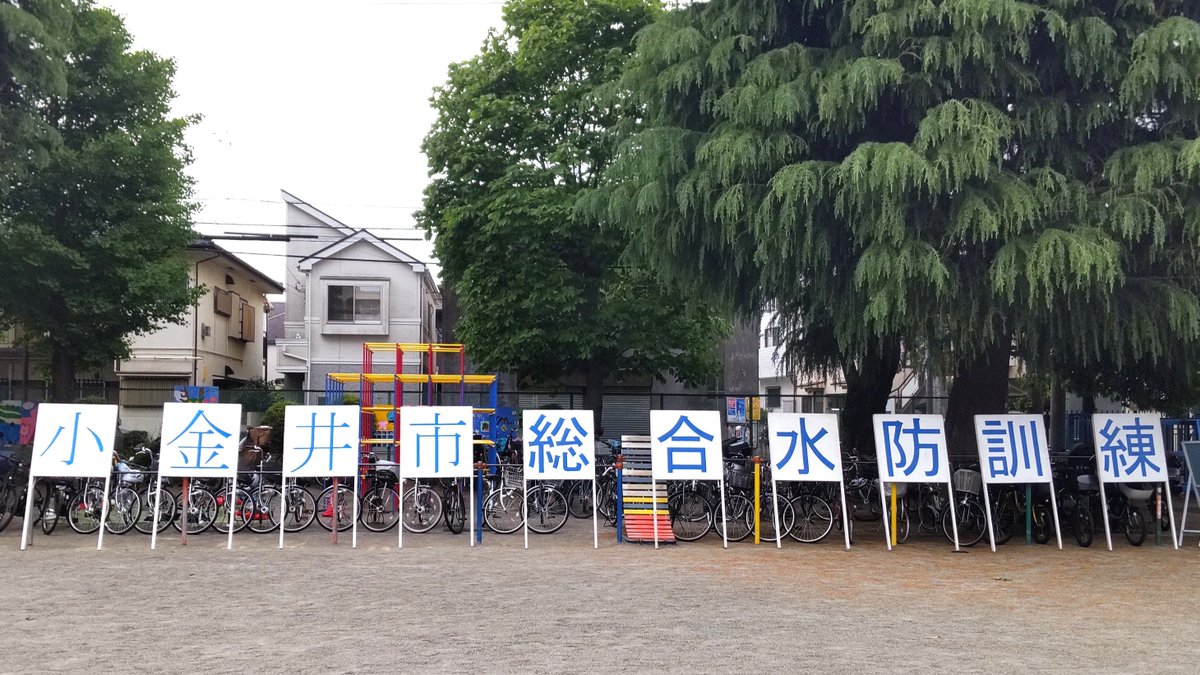 #小金井市総合水防訓練 少年消防団の皆さんは、レジ袋に水を入れ、それをプランターに入れて並べる体験をされていました。 ドローンも訓練に参加(写真の右上の◯の中)。 町会・自治会や近隣の方も多数参加されました。 関係者の皆さん、お疲れ様でした。