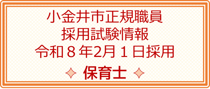 正規職員募集(令和8年2月1日採用【職種】保育士)。応募受付は令和7年10月31日まで。詳細はHPをご覧ください。【URL】https://city.koganei.lg.jp/smph/shisei..