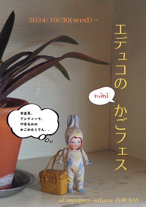 【エデュコ吉祥寺イベントのお知らせ】10/31(水)よりエデュコ吉祥寺店内にて人気イベント「エデュコのかごフェス」開催です!↓詳細はスタッフブログにてhttps://antiques-educo.co..