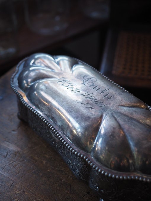 【エデュコ吉祥寺店】12/14(土)、少し早めに12時よりオープンしました。アメリカ銀器メーカーbarboursilvercoシルバープレートw28cm程のオーバル型ボックス。蓋には1899年クリスマ..