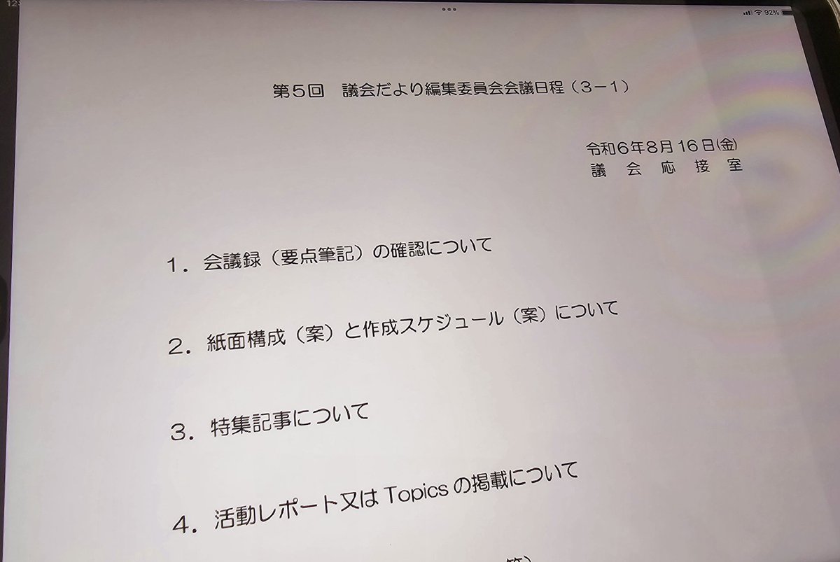 昨日は議会報GGの編集会議へ!実は台風などで2回延期され三度目の正直…笑次号の特集や人気コーナー議員一問一答のテーマ、活動報告のトピックスなどを手際良く決めつつ、重要なポイントを押さえる先輩議員達の頭..