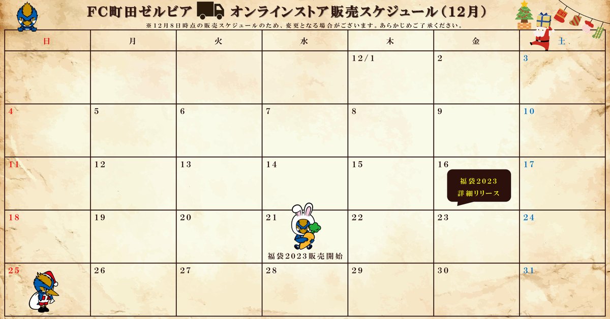 ||◤オンラインストア販売スケジュール◢||𝟐𝟎𝟐𝟐.𝟏𝟐.𝟏-𝟏𝟐.𝟑𝟏 12月のオンラインストアは、#ゼルビア福袋を販売🎍🐇🎍ご案内している#ゼルビー福袋に続いて、選手の福袋は来週リリース予定౾✍..