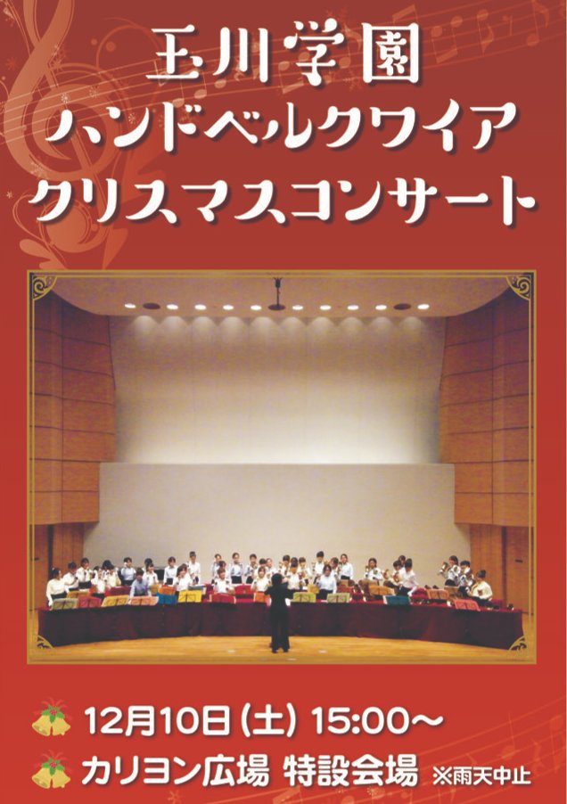 \いよいよ明日!/✨予告✨玉川学園ハンドベルクワイア🎄クリスマスコンサート🔔◎12月10日(土)15:00から※雨天中止◎カリヨン広場特設会場玉川学園ハンドベルクワイアの皆さんが奏でるクリスマスコンサ..