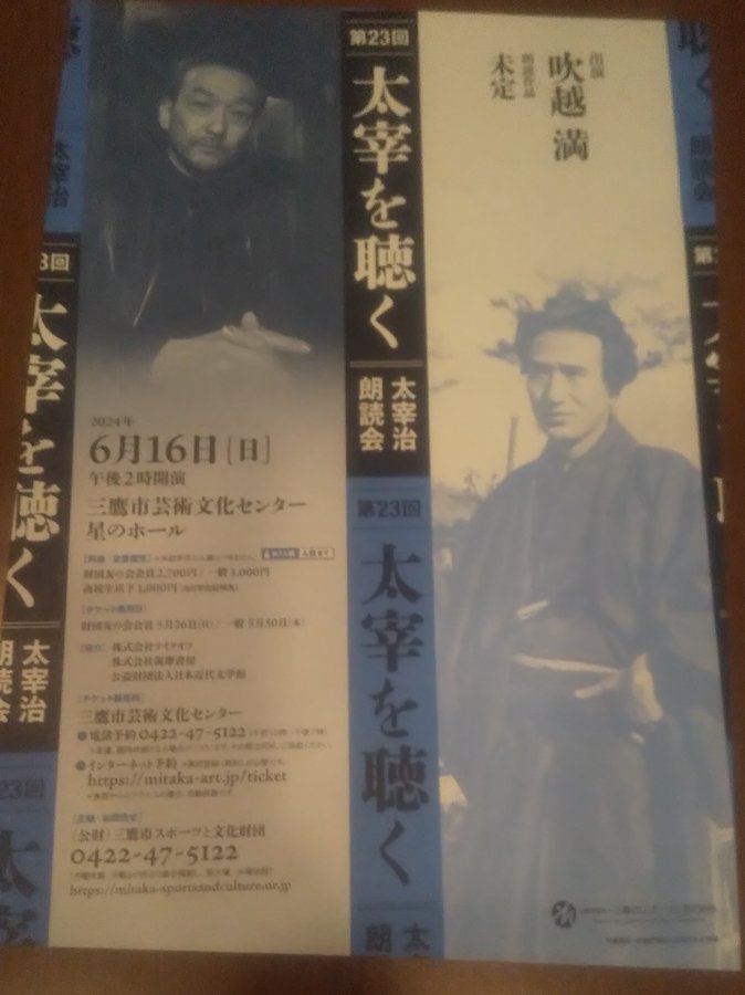 様々な世代の方の来店に感謝。「桜桃忌前はなんだかソワソワしますね」と話す濃い6月。16日は吹越満さん『人間失格』三鷹芸文センター朗読会。聴ける方幸運ですね。青森ご出身。↓写真ポウズとコメント文章ユーモ..