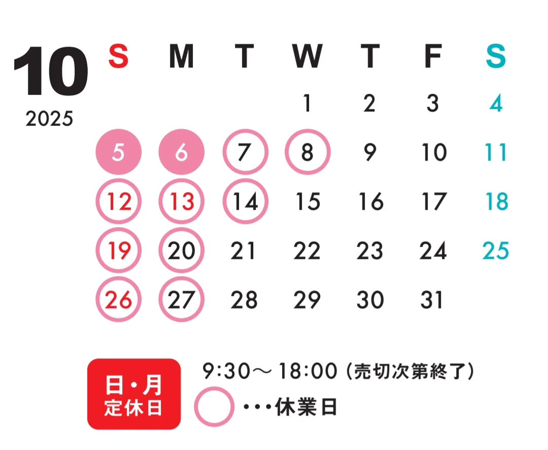 10月スケジュールです5日(日)、6日(月)はニュウマン新宿のパンまつりに出店するため店舗はお休みします。イベント出店の関係で休業日がイレギュラーになっております。よろしくお願いします。