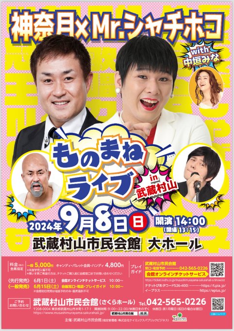 皆さま明日、いよいよ一般発売となります。オンラインチケット先行発売は本日まで。明日からは会館窓口、オンライン、チケットぴあ、イープラスで発売開始です。ご予約お待ちしております♪#神奈月#mrシャチホコ..